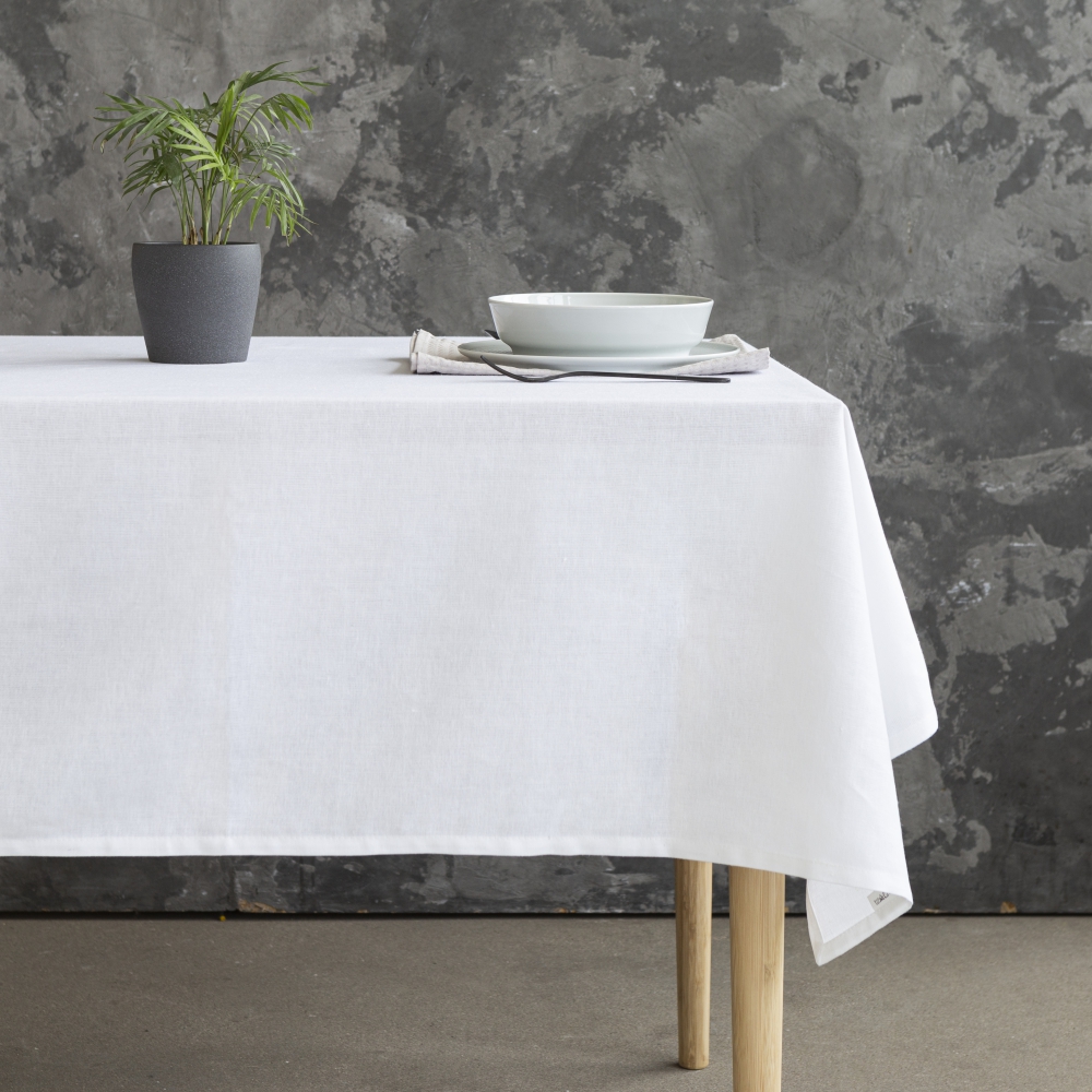 Die klassische, besonders weiße Tischdecke eignet sich sowohl für den Alltag als auch für besondere Anlässe. “Linen white” passt perfekt in jedes Ess- oder Wohnzimmer und überzeugt durch ihre schlichte Eleganz und helle Farbe.